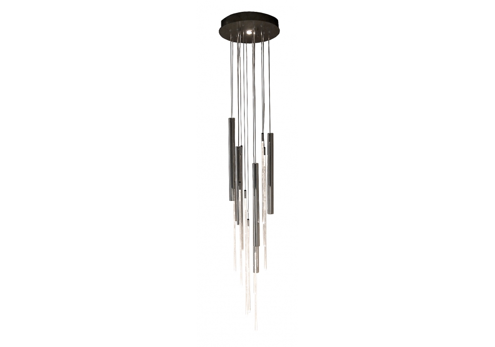 Koko von Studio PLS & Lorenzo Perini für Martinelli Luce entworfen, ist eine modulare Hängeleuchte, die durch eine Aluminiumrosette mit zentralem Spot strukturiert ist. Die Pendelleuchten sind Rohrprofile aus transparentem Methacrylat oder aus poliertem Aluminium mit integrierter LED-Lichtquelle. Koko ist in verschiedenen Ausführungen erhältlich.