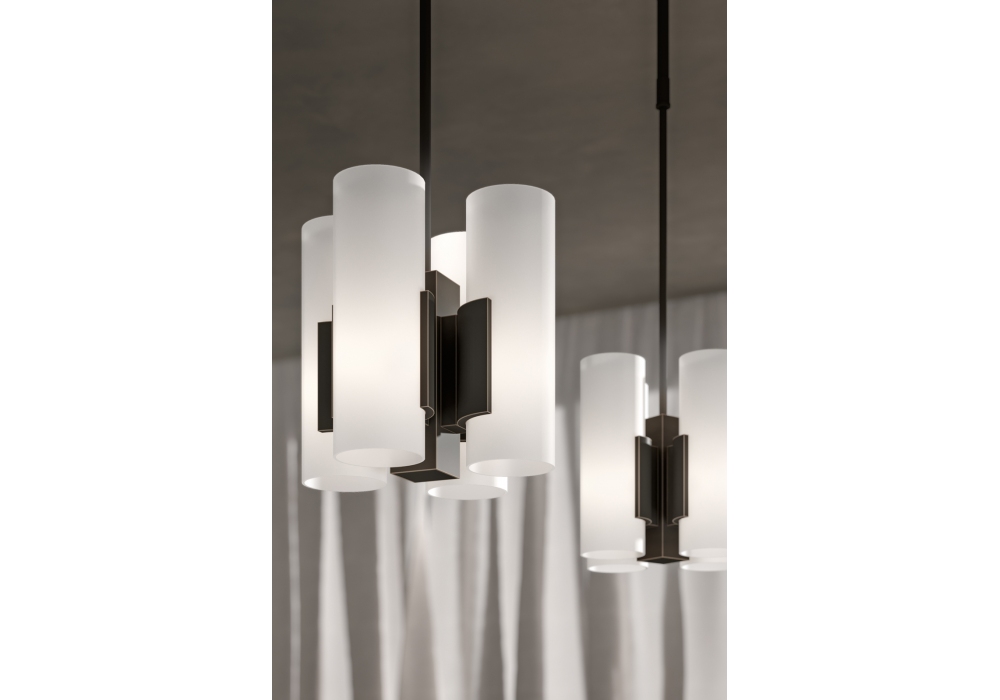 Unique von Massimo Tonetto für Venicem entworfen, ist eine Pendelleuchte mit diffusem Licht. Metallstruktur, hell oder dunkel brüniertes Messing-Finish. Diffusoren aus glänzend weißem, satiniertem weißem oder bernsteinfarbenem Alabasterglas.
