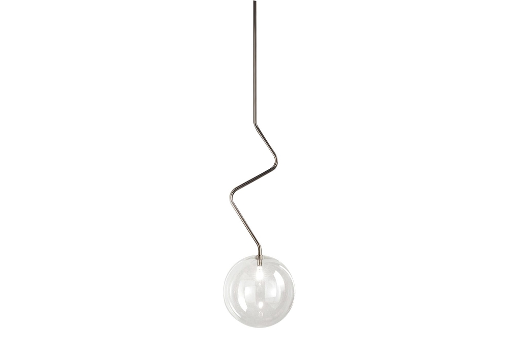 Essenza entworfen und hergestellt von Fisionarte Studio, ist eine Hängeleuchte mit Struktur aus schwarz verchromtem Metall. Der Lampenschirm besteht aus transparentem Borosilikatglas und schirmt eine LED-Lichtquelle mit G4-Anschluss ab. Essenza ist in verschiedenen Struktur- und Diffusormodellen erhältlich.