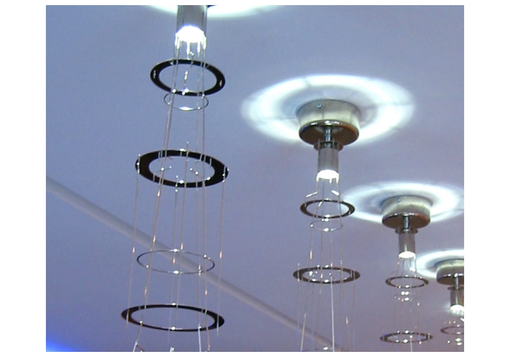 Hubble von Ombre Portée entworfen, ist eine Hängeleuchte aus gebürstetem und gewachstem Messing. Box driver aus lackiertem Stahl.