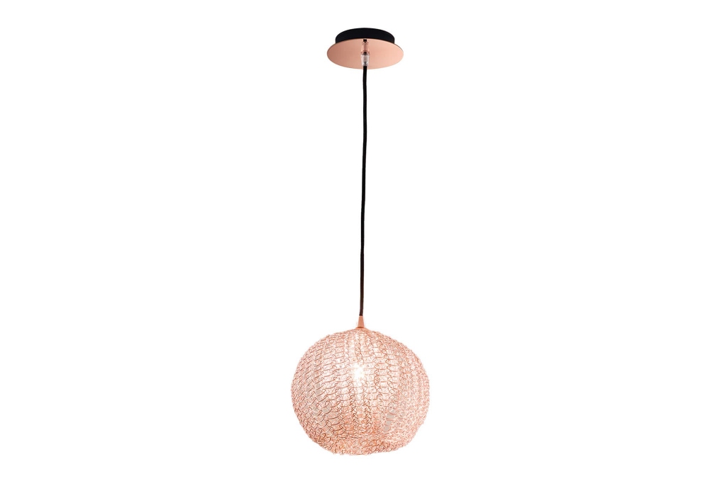Luce Sphere von Domenico Rinaldi für Fisionarte entworfen, ist eine Hängeleuchte mit Metallstruktur in verschiedenen Ausführungen. Der Lampenkörper hat eine Kugelform aus geflochtenem Metallgeflecht und nimmt eine LED- oder Halogenlichtquelle mit G9-Fassung auf. Luce Sphere ist in verschiedenen Ausführungen erhältlich.