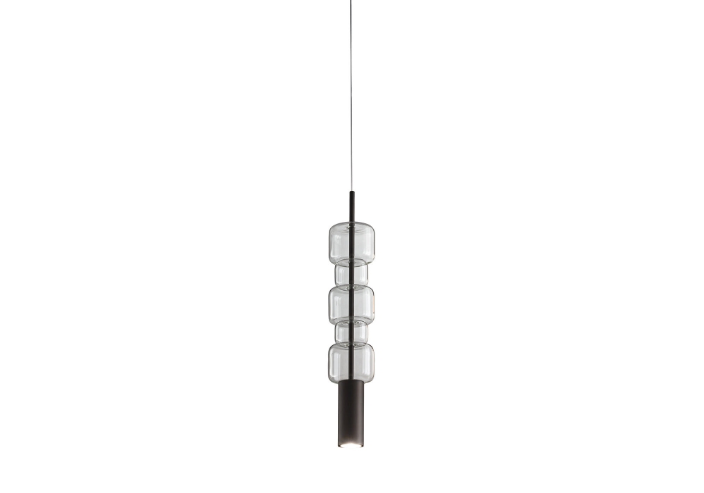 Uno +, entworfen und hergestellt von Fisionarte Studio, ist eine modulare Hängeleuchte mit lackierter oder verzinkter röhrenförmiger Metallstruktur in verschiedenen Ausführungen. Der Leuchtenkörper ist mit zylindrischen Glasmodulen verziert, die in verschiedenen Farben lackiert sind. Die gewählte Lichtquelle ist mit einer Kopplung vom Typ GU10 LED. Uno+ ist in verschiedenen Modellen erhältlich.