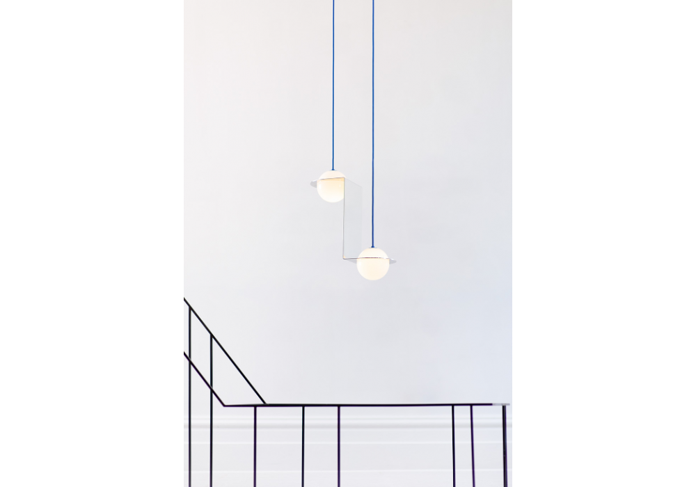 Laurent 05 von Guillaume Sasseville für Lambert & Fils entworfen, ist eine LED-Pendelleuchte. Die Struktur besteht aus pulverbeschichtetem Aluminium oder Messing und einer Kugel aus mundgeblasenem Opalglas. Erhältlich in verschiedenen Ausführungen.