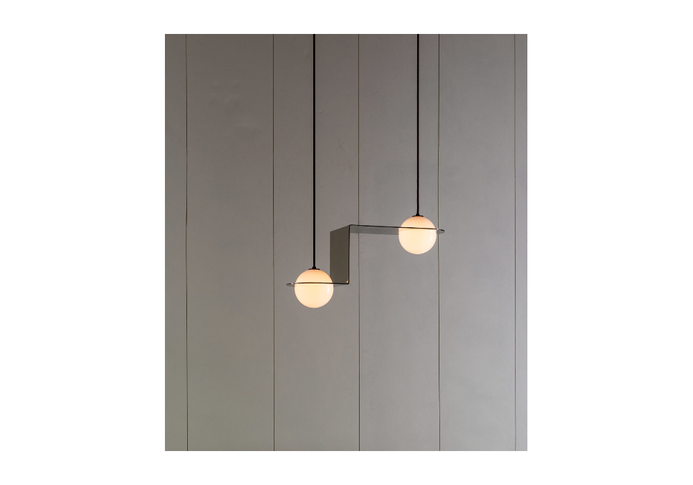 Laurent 06 von Guillaume Sasseville für Lambert & Fils entworfen, ist eine LED-Pendelleuchte. Die Struktur besteht aus pulverbeschichtetem Aluminium oder Messing und einer Kugel aus mundgeblasenem Opalglas. Erhältlich in verschiedenen Ausführungen.