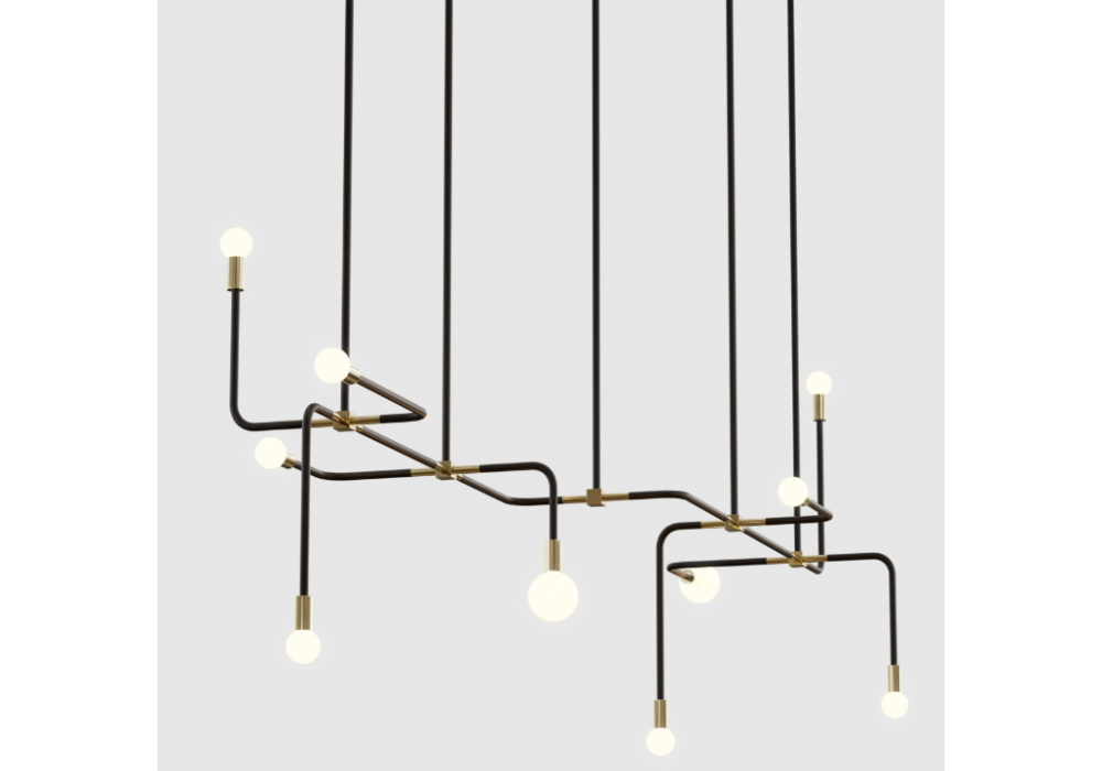 Beaubien, entworfen und hergestellt von Lambert & Fils, ist eine Pendelleuchte aus pulverbeschichtetem Stahl und einem Körper aus Aluminium oder Messing, Diffusoren aus milchfarbenem Glas und Vinylkabel. Erhältlich in verschiedenen Ausführungen und Größen.