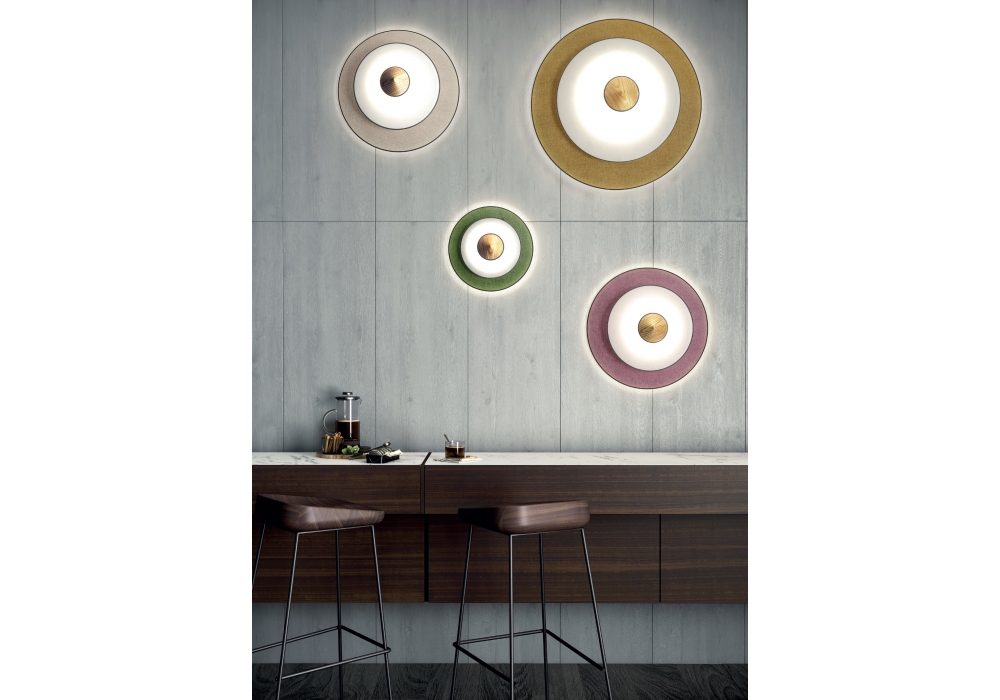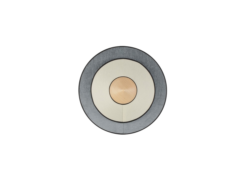 Cymbal von Jette Scheib für Forestier entworfen, ist eine Wandleuchte aus Samt und Baumwolle, die mit einem Textilkabel mit Holzfinish ausgestattet ist. Verfügbar in verschiedenen Abmessungen und Ausführungen.