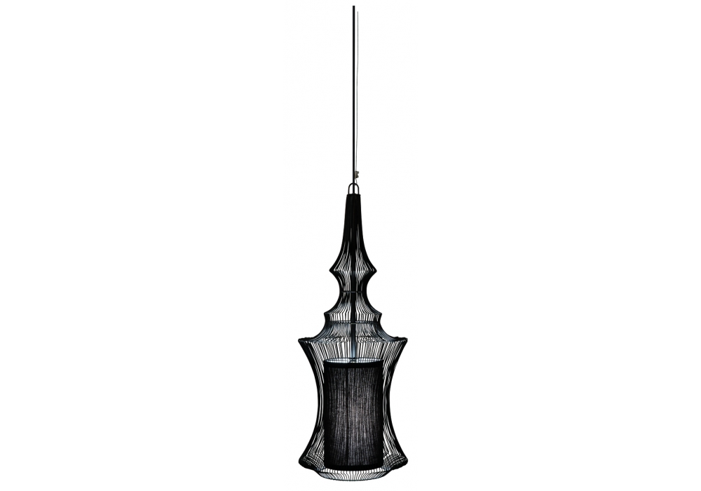 Tibet hergestellt und signiert von Forestier, ist eine Hängeleuchte aus schwarzem Metall.