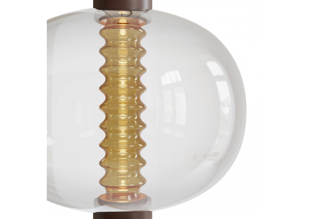 Atomium von Hopf & Wortmann – Büro Für Form für Kundalini entworfen, ist eine Hängeleuchte mit Diffusor aus rotationsgeformtem Polyethylen und interner Struktur mit sechs Lichtern, die auf gespannten Stahlfedern montiert sind. Selbsttragendes Kabel mit Stahlseele