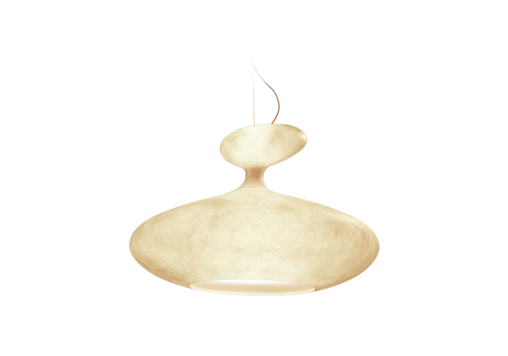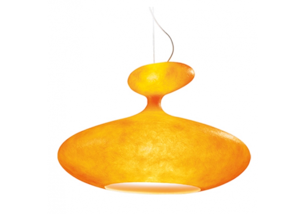 E.T.A. SAT von Guglielmo Berchicci für Kundalini entworfen, ist eine Hängeleuchte mit handgefertigtem Diffusor aus ökologischem Fiberglas, Reflektor aus Polycarbonat und interner Metallstruktur. Verfügbar in verschiedenen Ausführungen.