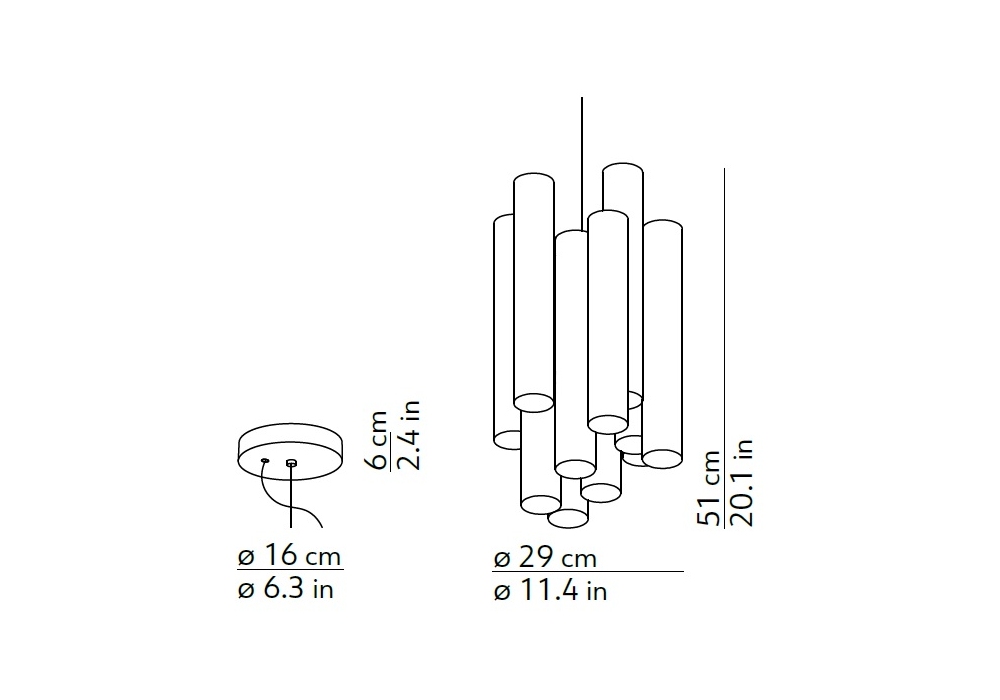 Toot von Karim Rashid für Kundalini entworfen, ist eine dimmbare Hängeleuchte mit farbigen oder satinierten Plexiglas-Diffusoren und lackierter Metallstruktur.