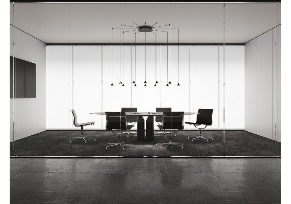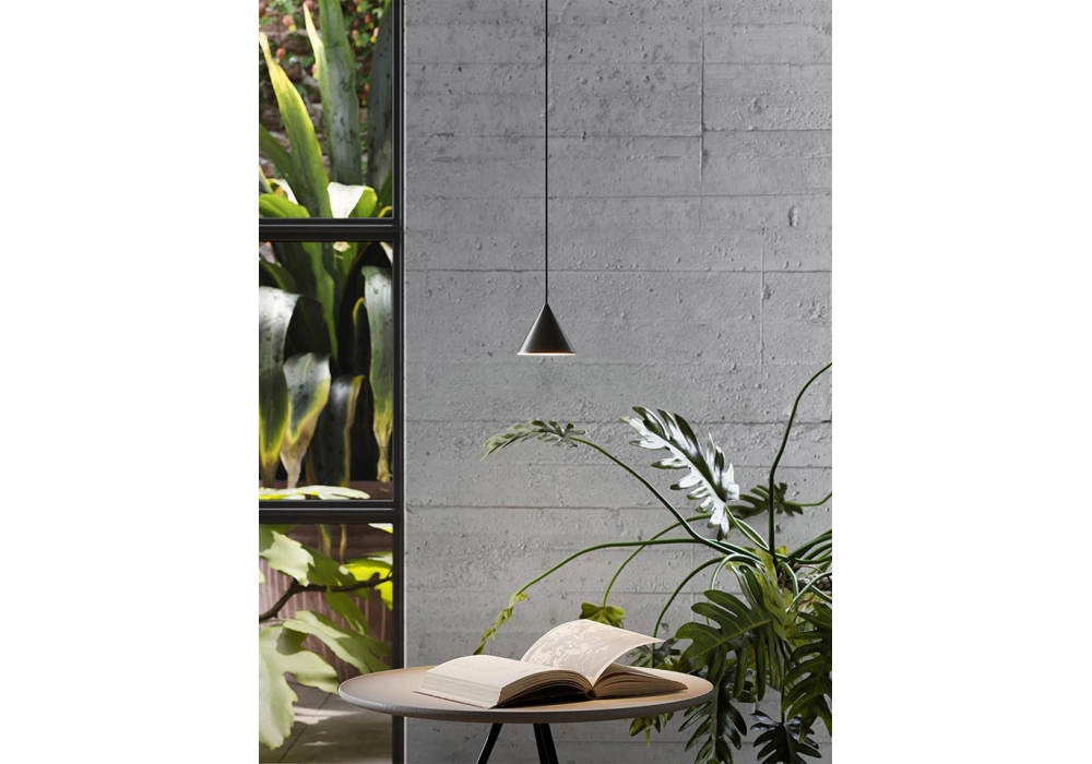 Filomena von Matteo Ugolini für Karman entworfen, ist eine Pendelleuchte mit mattschwarzer Aluminiumstruktur und mattschwarzer Deckenrosette aus Metall. Erhältlich in verschiedenen Modellen. Interne Benutzung.