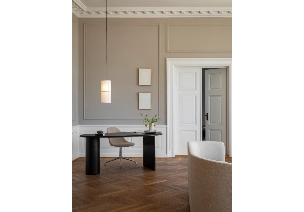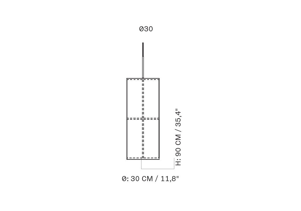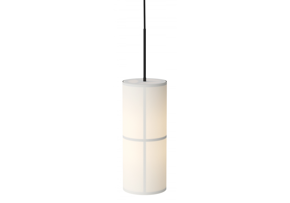 Hashira von Norm Architects für Audo Copenhagen entworfen, ist eine Pendelleuchte mit zylindrischer Form, Aluminiumstruktur und durchscheinendem Lampenschirm aus Stoff. Erhältlich in verschiedenen Ausführungen und Größen.