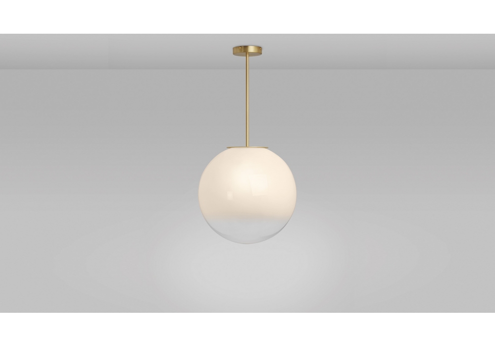 Skye von CTO Lighting entworfen, ist eine Hängeleuchte aus bronzefarbenem oder satiniertem Messing und Diffusoren aus Opalglas. Verfügbar in 3 Abmessungen.