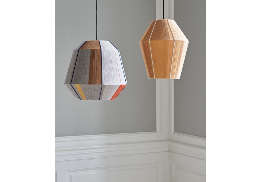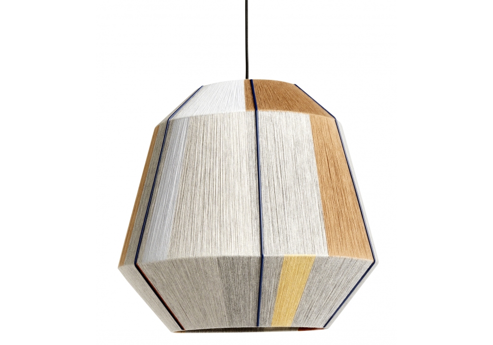 Bonbon von Ana Kraš für Hay entworfen, ist eine Hängeleuchte mit handgewebtem Außenschirm aus 80 % Wolle und 20 % Nylon-Mischgarn und Innenrahmen aus pulverbeschichtetem Stahl. Deckenrosette aus strukturiertem ABS-Kunststoff und längenverstellbarem Kabel aus geflochtenem Gewebe mit Silikonisolierung. Verfügbar in verschiedenen Modellen.