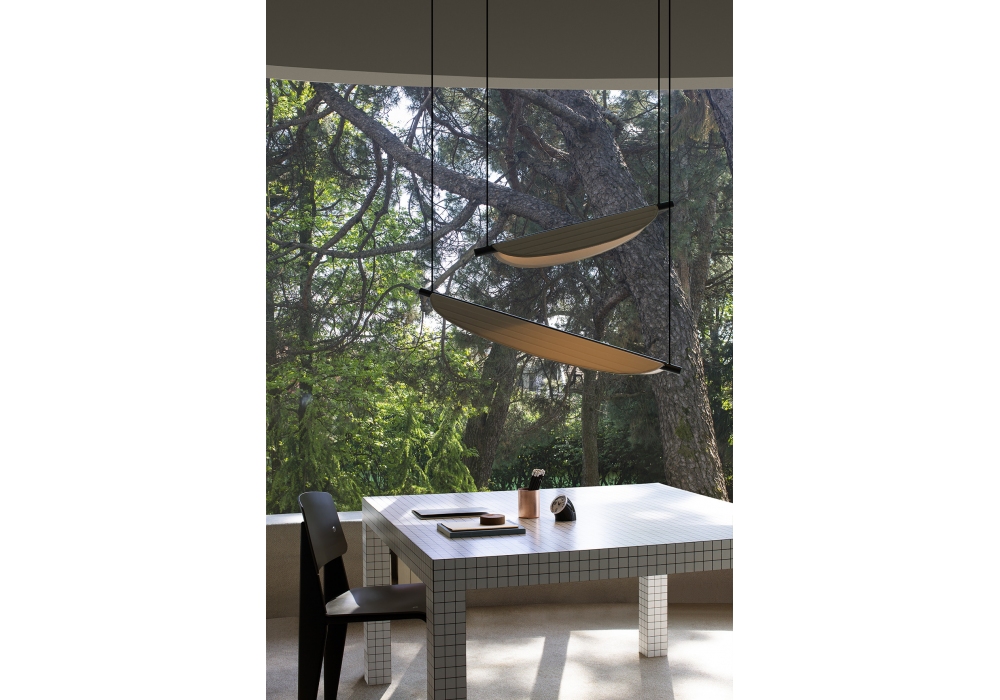 562 Thula von Federica Biasi für Tooy entworfen, ist eine Pendelleuchte aus Aluminium, Metall, Leder, Holz. Erhältlich in verschiedenen Ausführungen und Größen.