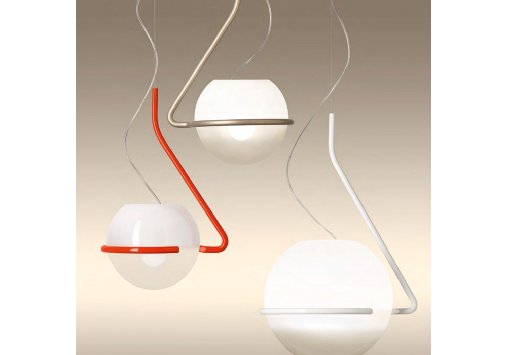 Tonda von Ferruccio Laviani für Foscarini entworfen, ist eine Hängeleuchte mit tragender Struktur aus lackiertem Metallrohr und kugelförmigem Diffusor aus weißem geblasenem Glas. Die gewählte Lichtquelle ist vom dimmbaren LED-Typ mit Triac-Technologie. Tonda ist in verschiedenen Ausführungen und Größen erhältlich.