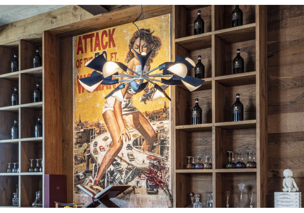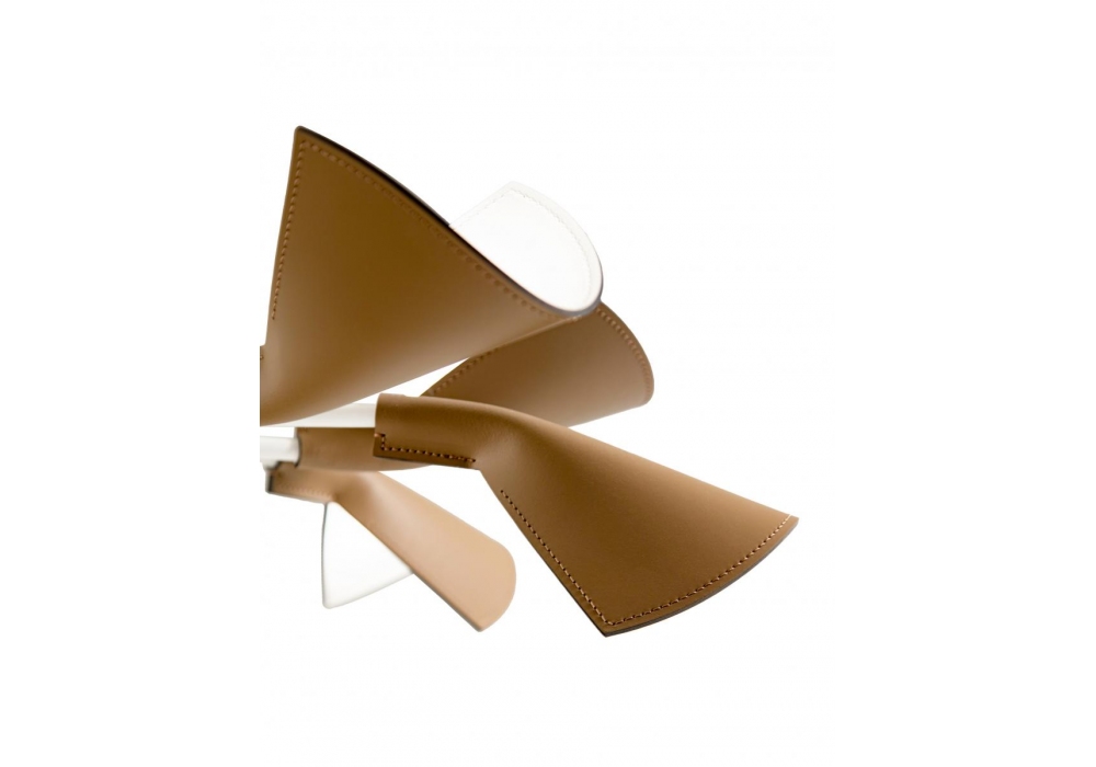 Duffy von Stefano Santilio für Enrico Pellizzoni entworfen, ist eine Pendelleuchte aus satiniertem oder weiß lackiertem Messing, Diffusoren mit Leder überzogen, in verschiedenen Farben erhältlich.