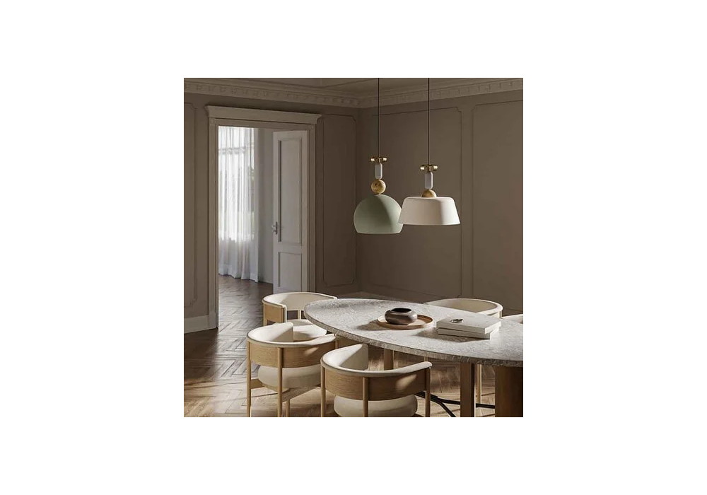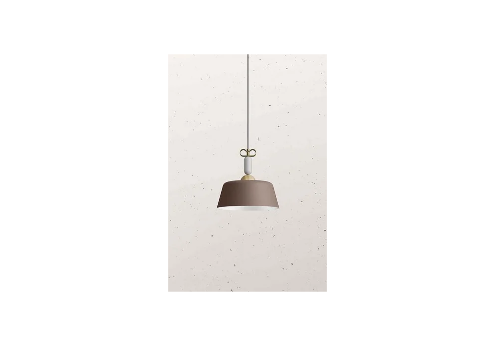 Bon Ton N3 von Cristina Celestino für Il Fanale entworfen ist eine Hängeleuchte mit tragender Struktur aus natürlichem Messing und Eichenholz. Der Diffusor hat eine abgerundete Form mit weißen Innenteilen und schirmt eine dimmbare LED-Lichtquelle ab. Bon Ton N3 ist in verschiedenen Ausführungen erhältlich.