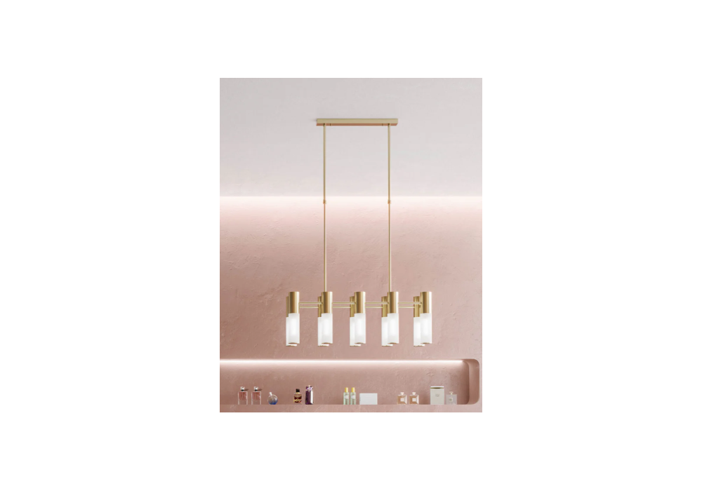 Etoile von Mirta Lando für Il Fanale entworfen ist eine Hängeleuchte mit tragender Struktur aus Messing. Der Diffusor hat eine zylindrische Form besteht aus Messing und weißem Borosilikatglas und verfügt über eine dimmbare LED-Lichtquelle. Etoile ist in verschiedenen Modellen und Ausführungen erhältlich.