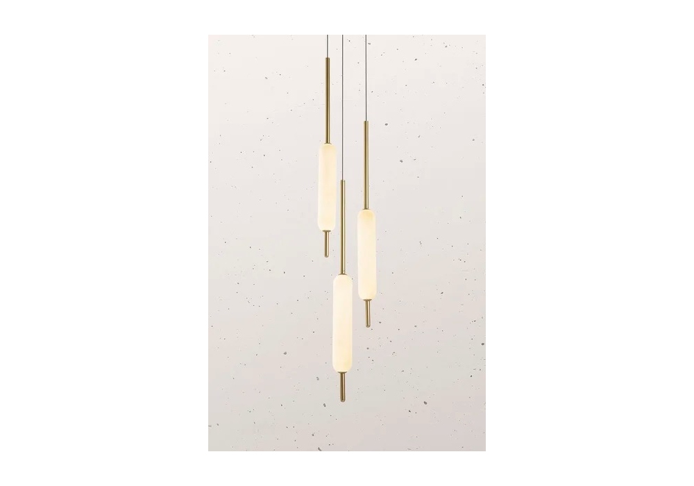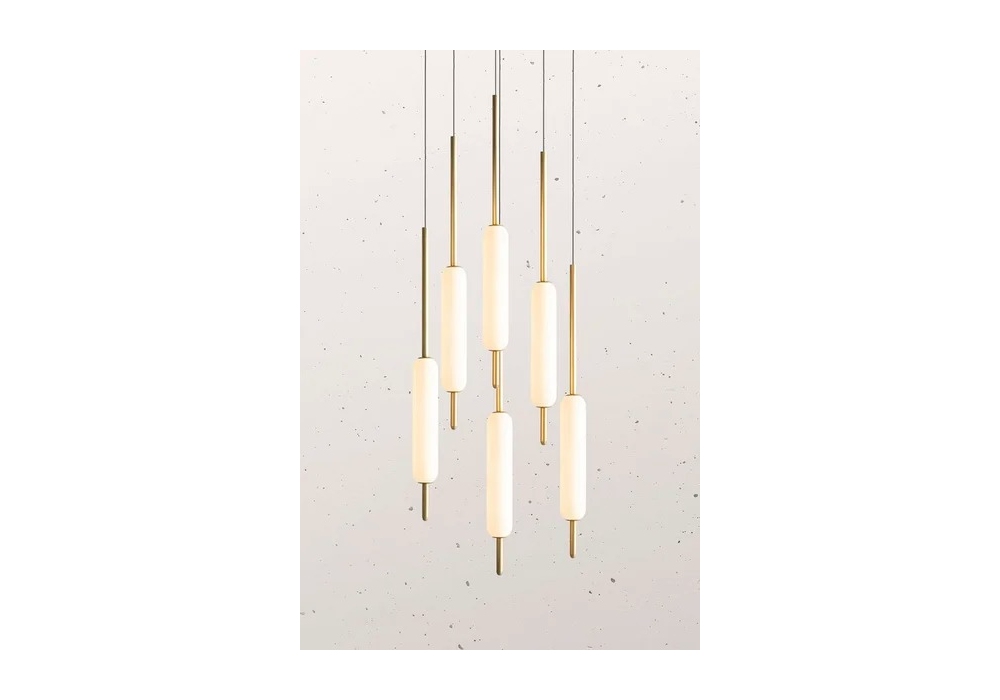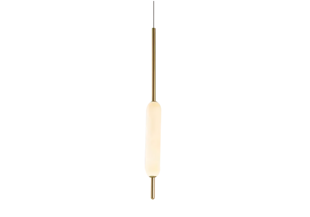 Typha von Brambilla Calvi für Il Fanale entworfen ist eine Hängeleuchte mit röhrenförmiger Messingstruktur und Diffusor aus Borosilikatglas. Die verwendete Lichtquelle ist vom Typ LED mit Triac-Dimmbarkeitssystem. Typha ist in verschiedenen Modellen erhältlich.