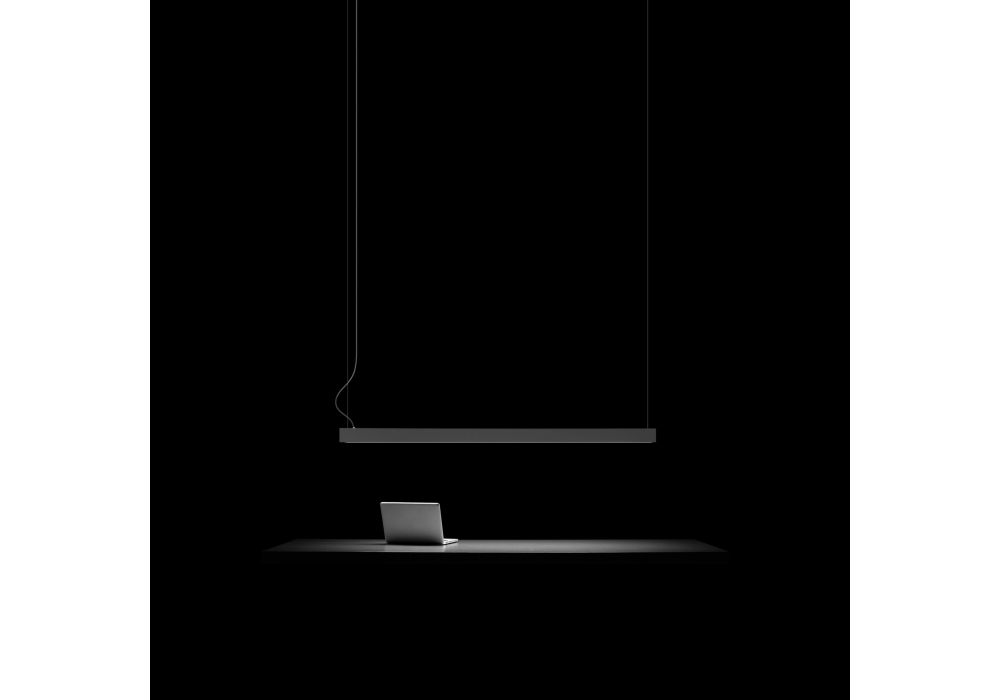 Spy entworfen und hergestellt von Davide Groppi, ist eine Hängeleuchte mit einer matt weiß lackierten Metalltragstruktur mit Stahlseilaufhängung. Der Diffusor ist aus Methacrylat und schirmt eine LED-Lichtquelle ab.