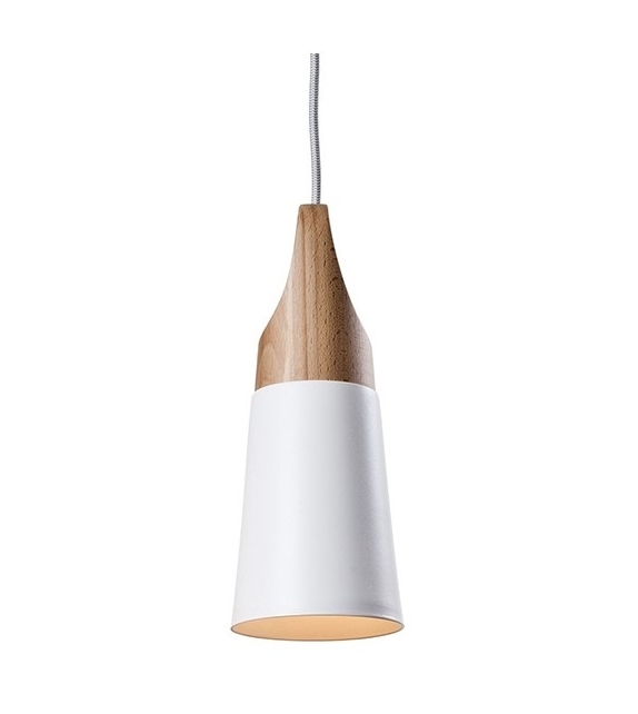 Slope von Skrivo für Miniforms entworfen, ist eine hohe Pendelleuchte mit oberem Teil aus Buche natur oder schwarzem Anilin. Lampenschirm in verschiedenen Ausführungen erhältlich.