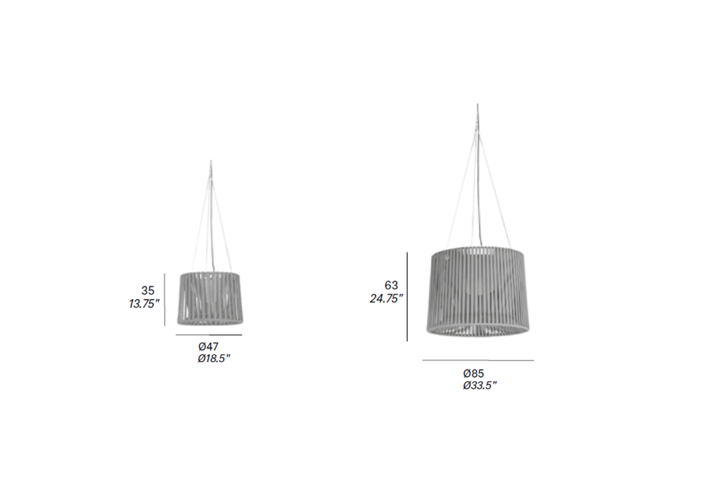 | Abmessungen | • Ø 47 x H 35 cm; • Ø 85 x H 63 cm |