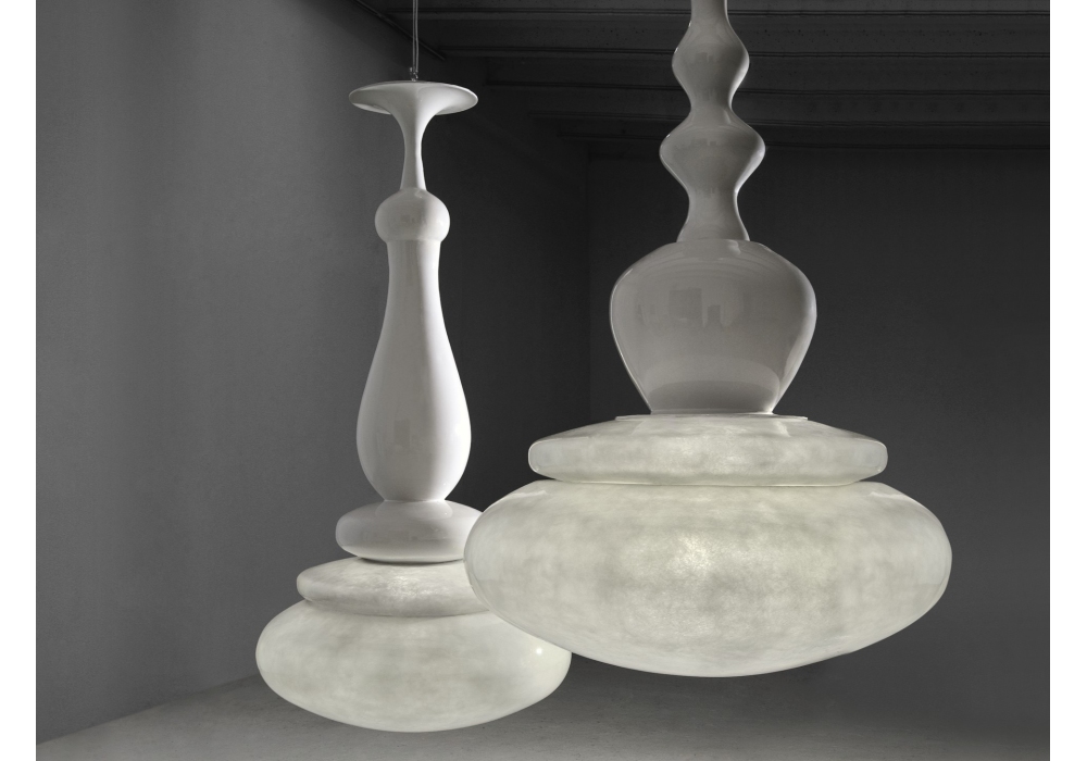 Lucilla von ImperfettoLab entworfen, ist eine Pendelleuchte aus Glasfaser.