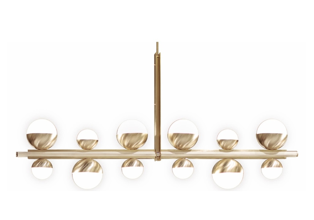Eclipse von Andrea Bonini für Turri entworfen, ist eine Hängeleuchte mit Metallstruktur in hellgoldenem Finish. Verfügbar in mehreren Modellen.