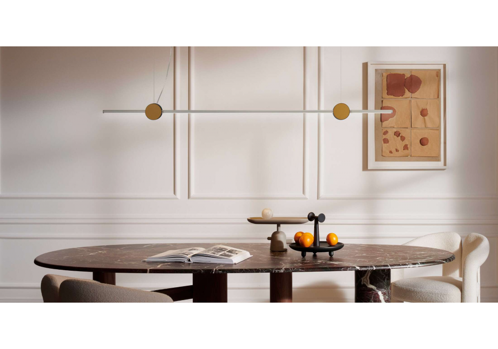 EITIE Line von Tobia Scarpa für Cassina entworfen, ist eine Hängeleuchte aus Aluminium und PC mit lackierten Metallgelenken in verschiedenen Ausführungen. Bestehend aus zwei LED-Streifen.