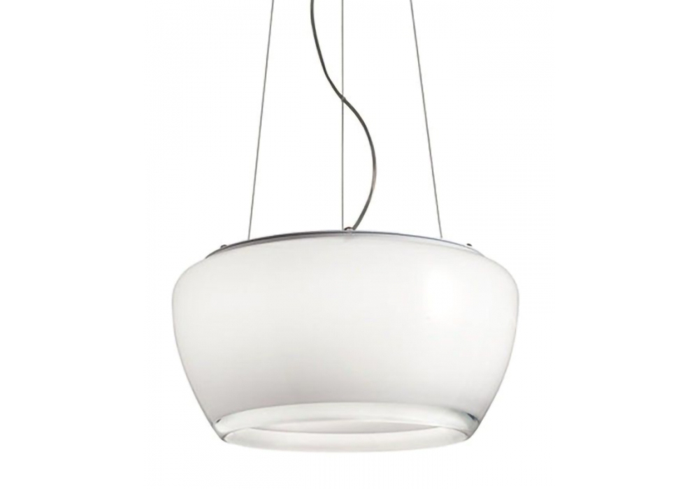 Implode LED von Gregorio Spini für Vistosi entworfen ist eine Hängeleuchte mit tragender Struktur aus weißem Metall. Der Diffusor besteht aus rundem Glas in Weiß/Kristall-Finish und nimmt eine dimmbare LED-Lichtquelle in verschiedenen Lichtabstufungen auf. Implode LED ist in verschiedenen Modellen erhältlich.