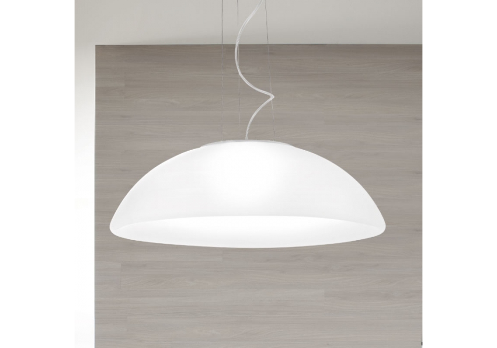 Infinita LED von Toso Noti Massari & Associati für Vistosi entworfen ist eine Hängeleuchte mit tragender Struktur aus mattweißem Metall. Der Diffusor besteht aus rundem Glas in Weiß/Satin-Finish und nimmt eine dimmbare LED-Lichtquelle in verschiedenen Lichtabstufungen auf. Infinita LED ist in verschiedenen Modellen erhältlich.