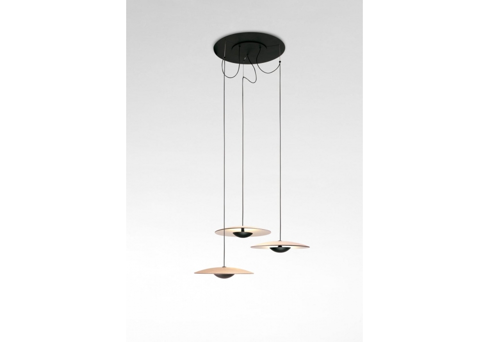 Ginger 20 von Joan Gaspar für Marset entworfen, ist eine Hängeleuchte mit Lampenschirm aus gepresstem Holz oder gebürstetem Aluminium. Erhältlich in verschiedenen Ausführungen und Modellen.