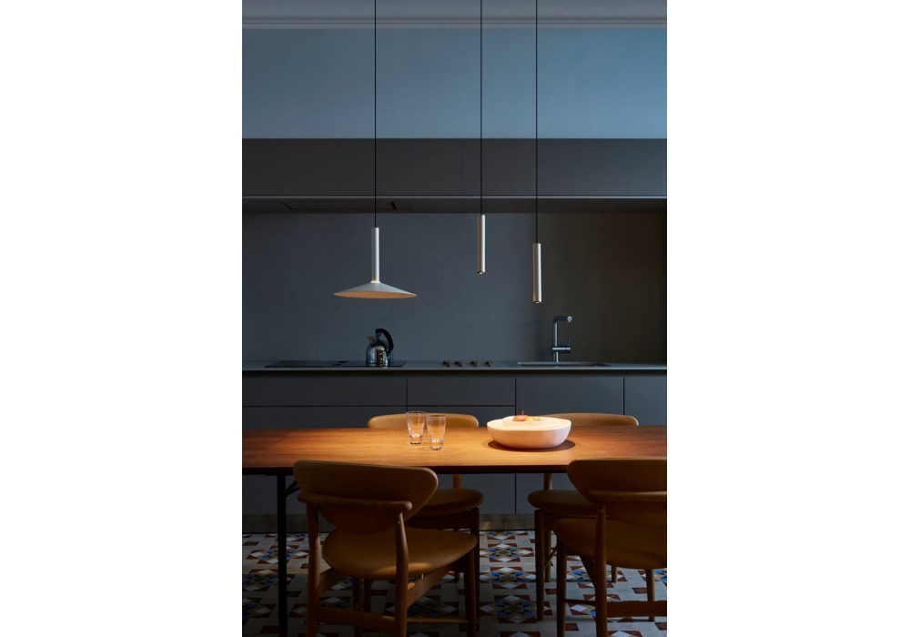 Milana von Jaume Ramírez für Marset entworfen, ist eine Hängeleuchte aus Aluminium und Polycarbonat-Diffusor, erhältlich in verschiedenen Ausführungen.
