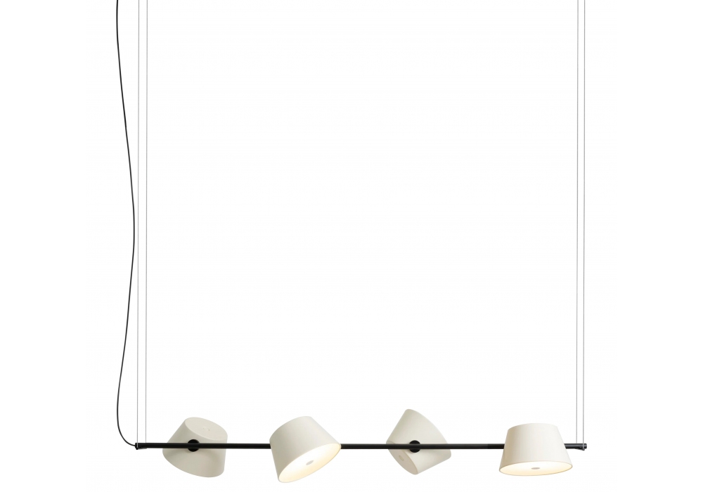 Tam Tam 4-6 von Fabien Dumas für Marset entworfen, ist eine Hängeleuchte aus Aluminium und einem opaleszierenden Methacrylat-Diffusor. Erhältlich in verschiedenen Ausführungen und Ausführungen.