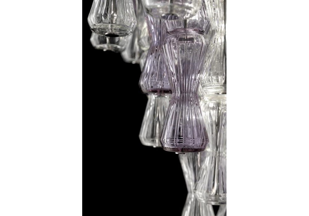 Clepsydra entworfen und hergestellt von Barovier & Toso ist eine mehrstufige Hängeleuchte mit tragender Struktur und Details aus poliertem Chrom oder verzinktem goldfarbenem Metall. Der Diffusor besteht aus verschiedenen sanduhrförmigen Elementen aus venezianischem Glas und einer Umzäunung aus dimmbaren LED- oder Halogenlichtquellen. Clepsydra ist in verschiedenen Modellen und Ausführungen erhältlich.