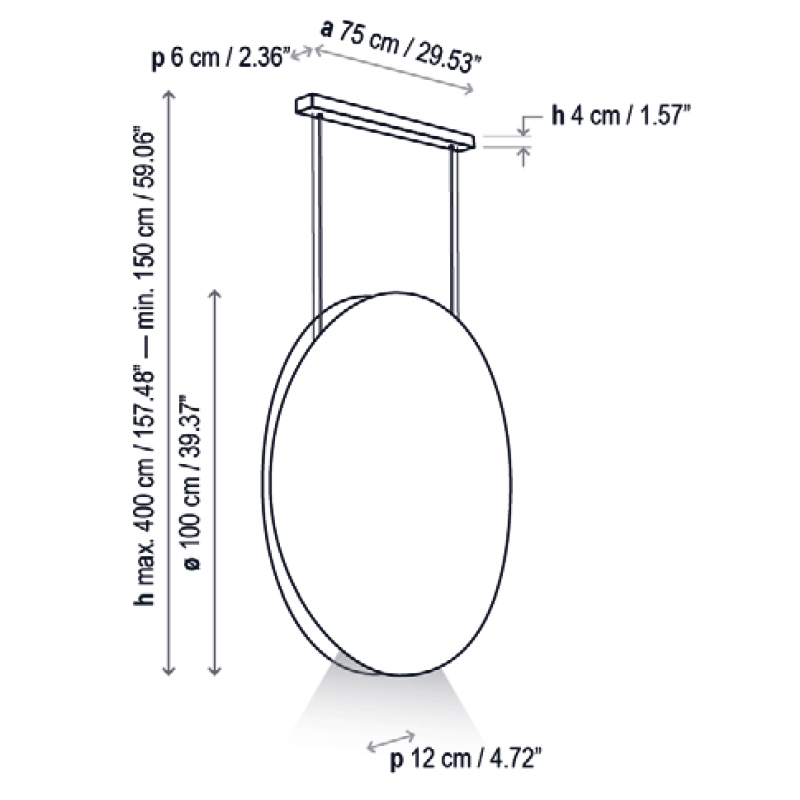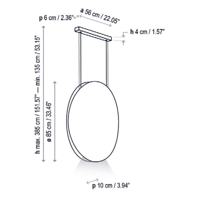 | Abmessungen | Ø 85 x 10 x H 85 cm Hmax 385 cm; Ø 100 x 10 x H 100 cm Hmax 400 cm. |