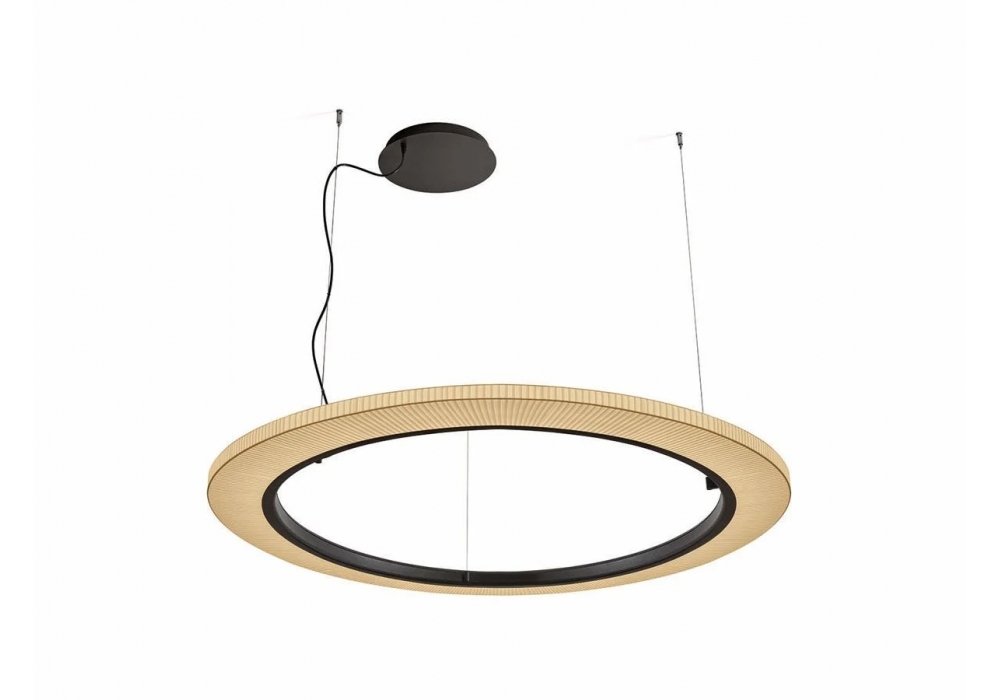 Roda von Joana Bover für Bover entworfen, ist eine runde Hängeleuchte mit einer tragenden Struktur aus Aluminium und lackiertem Stahl. Der Diffusor ist aus Stoff gefertigt und schirmt eine dimmbare LED-Lichtquelle ab. Roda ist in verschiedenen Modellen und Ausführungen erhältlich.