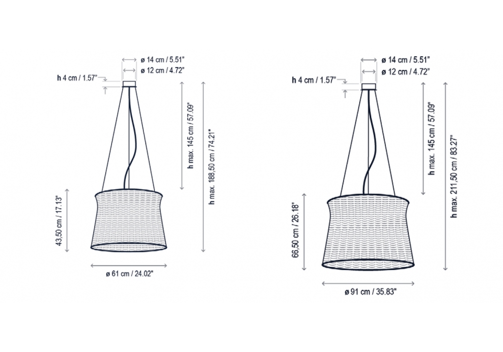 | Lampenschirm Durchmesser | Ø 61 cm; Ø 91 cm. |