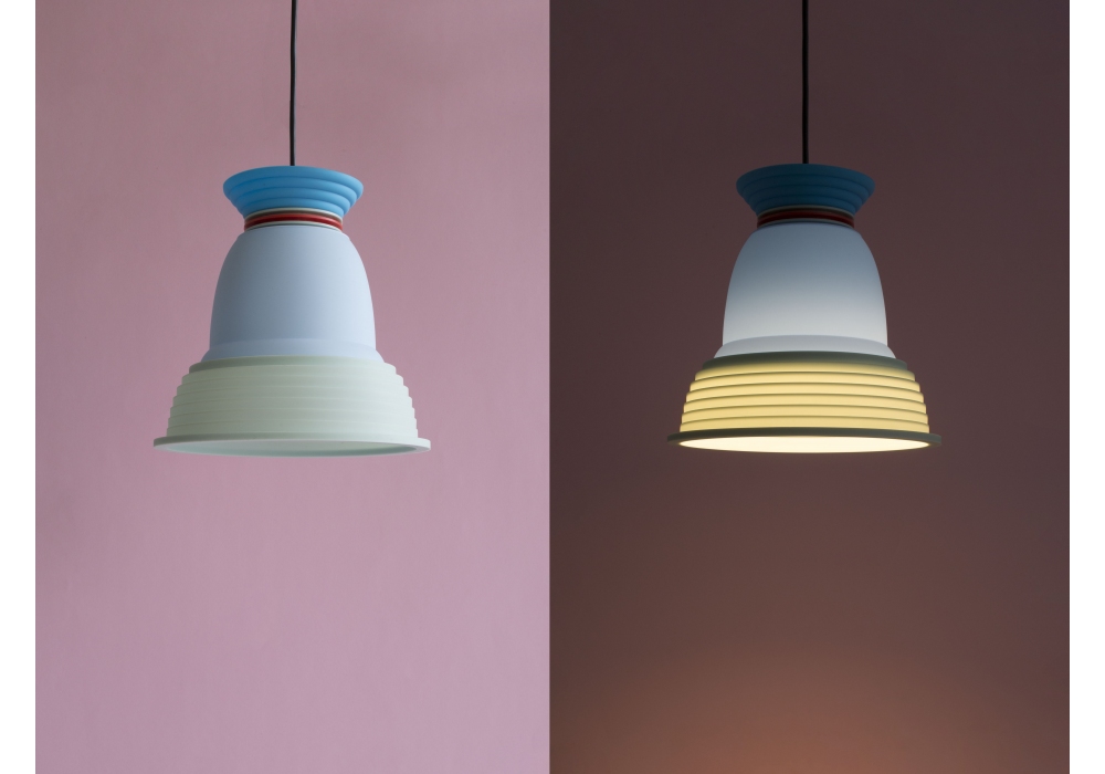CL3 von Sowden ist eine LED-Hängeleuchte aus ABS und Silikon. Deckenrosette aus schwarzem Polycarbonat und strukturiertes ABS-Kabel im Lieferumfang enthalten.