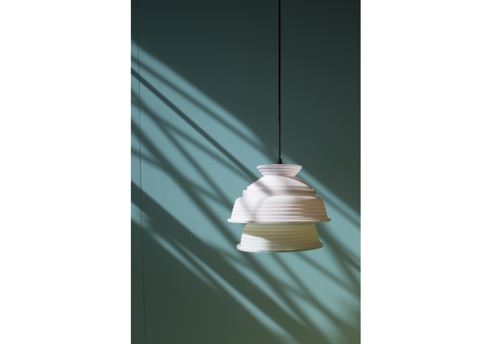 CL4 von Sowden ist eine LED-Hängeleuchte aus ABS und Silikon. Deckenrosette aus schwarzem Polycarbonat und strukturiertes ABS-Kabel im Lieferumfang enthalten.