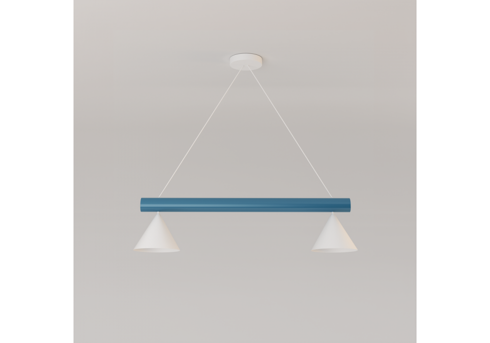 Tube With Globes and Cones von Atelier Areti entworfen, ist eine Hängeleuchte aus lackiertem Metall, erhältlich in verschiedenen Ausführungen und Modellen. Auf Wunsch ist es auch möglich, die Farben von Kegel, Rohr und Rosette individuell anzupassen.