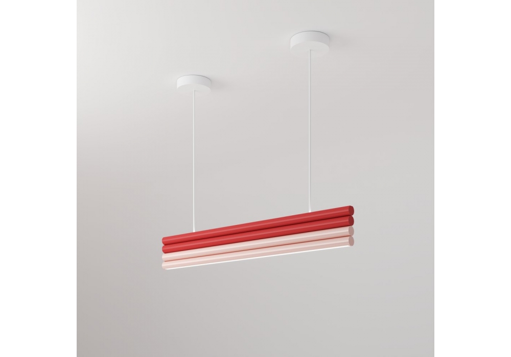 Parallel Tubes von Atelier Areti entworfen, ist eine Hängeleuchte aus lackiertem Metall, erhältlich in verschiedenen Ausführungen und zwei Modellen. Auf Wunsch ist es auch möglich, die Farben der Tuben individuell anzupassen.
