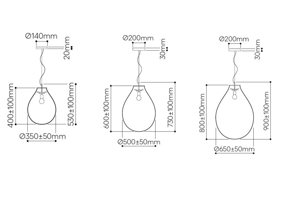 | Abmessungen | Small_ Ø 35 x H 53 cm; Medium_ Ø 50 x H 73 cm; Large_ Ø 65 x H 90 cm. |