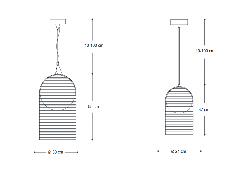 | Diffusor | Ø 21 x H 37 cm; Ø 30 x H 55 cm. |