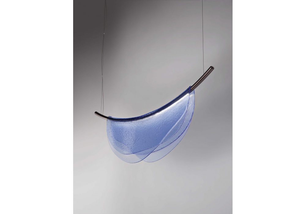 Dalì von Nava + Arosio Studio für Italamp entworfen, ist eine Hängeleuchte mit Struktur aus Rotgussmetall und farbigen Diffusoren aus thermogeformtem Glas.