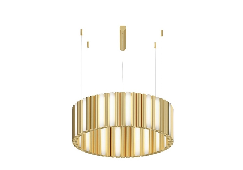 Gamma von Sylvain Willenz für CVL Luminaires entworfen, ist eine Hängeleuchte aus massiven Messingrohren und weißen Polycarbonat-Diffusoren. Verfügbar in mehreren Ausführungen und Modellen.