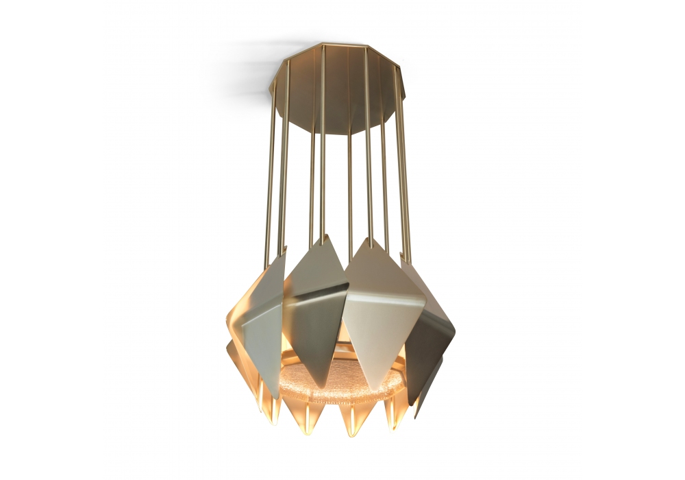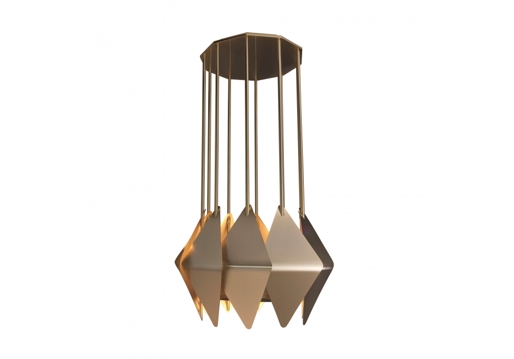 Sputnik Oxy von Draga & Aurel für Visionnaire entworfen ist ein Leuchter mit zehneckiger Rosette und lackierten Stahlstielen. Die Diffusoren sind rautenförmig mit einem zentralen Diffusor aus zehneckigem Kunstglas und einem Diagramm der LED-Lichtquellen. Sputnik Oxy ist in verschiedenen Modellen und Ausführungen erhältlich.