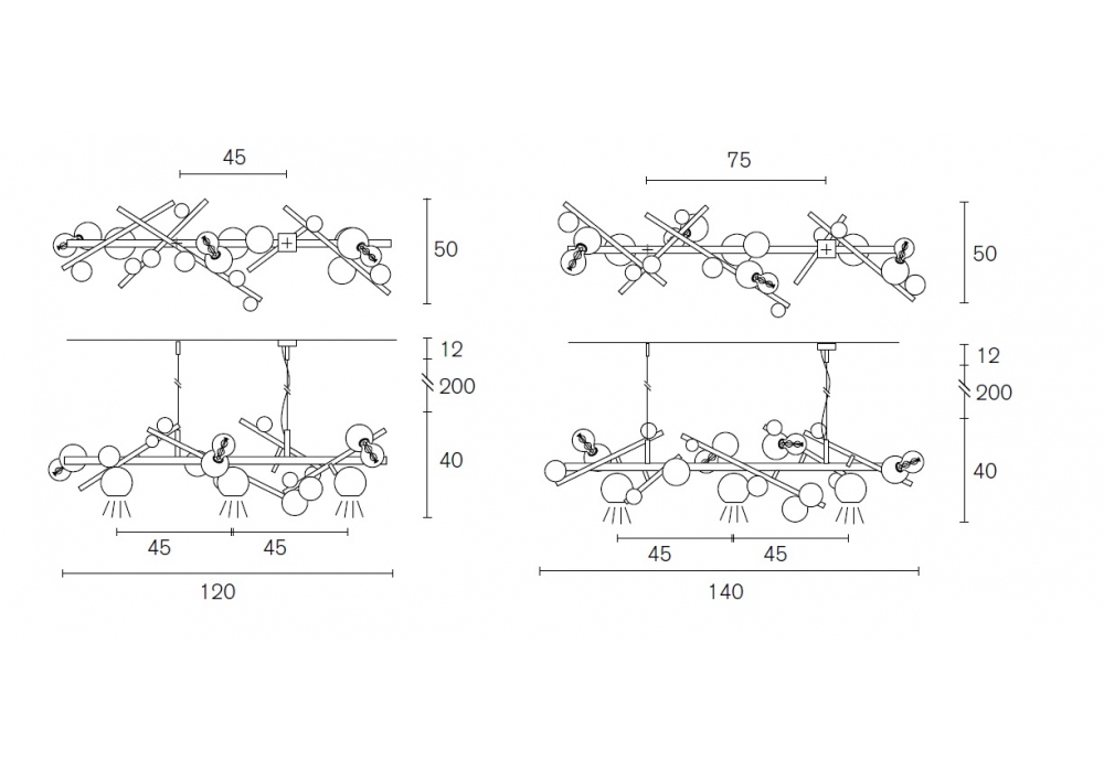 Galaxy Long von William Brand für Brand Van Egmond entworfen, ist eine Hängeleuchte mit Metallstruktur. Verfügbar in mehreren Ausführungen und Abmessungen.