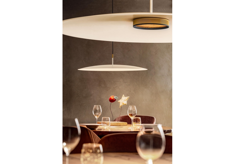 Overfly Plus von Marc Sadler für Olev entworfen, ist eine Hängeleuchte aus Aluminium und Plexiglas, erhältlich in verschiedenen Ausführungen und Versionen.